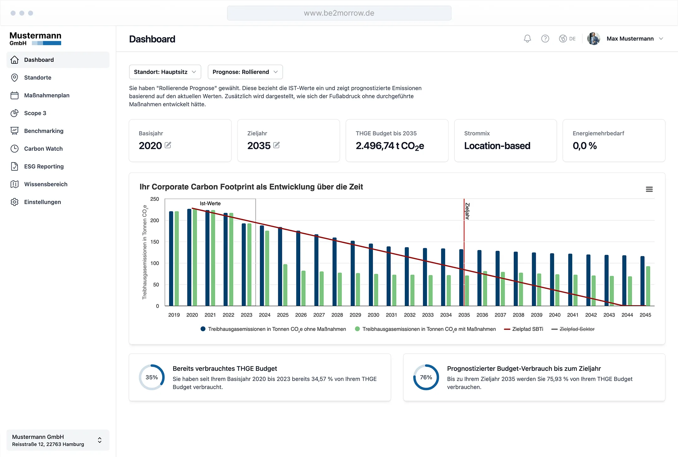 Mit be2morrow erstellen Sie automatisiert und KI-gestützt die Klimastrategie für Ihr Unternehmen.